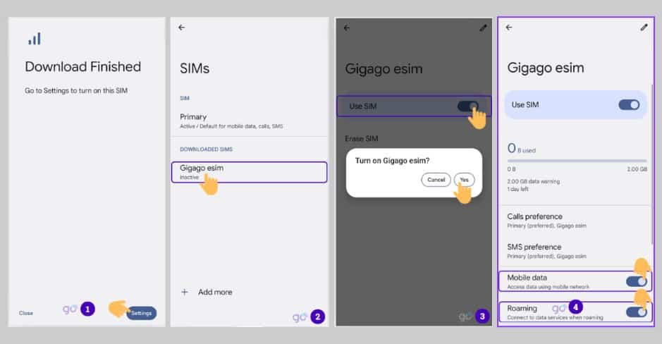 Với eSIM du lịch quốc tế, bạn cần thực hiện một số bước để kích hoạt gói eSIM sau khi sang đến quốc gia đó. eSIM du lịch quốc tế thường là eSIM data. Lúc này bạn cần kích hoạt dữ liệu di động cho eSIM đó.