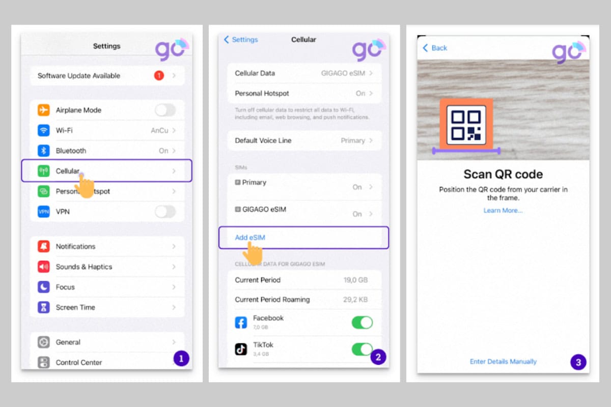 Các bước cài đặt eSIM trên iPhone – bước 1 2 3