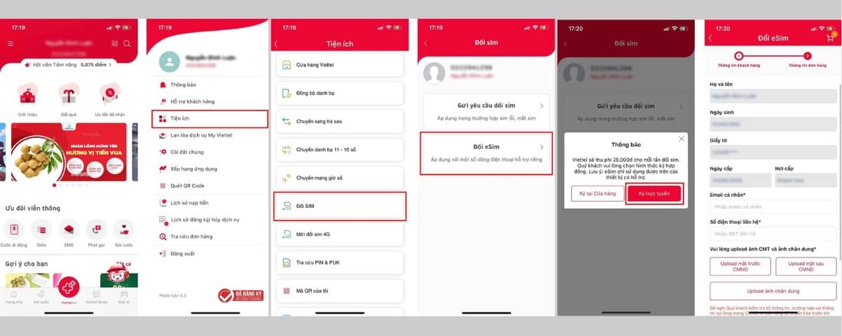 Các bước chuyển đổi eSIM online tại ứng dụng My Viettel