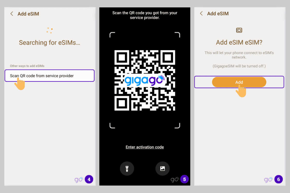 Các bước cài đặt eSIM trên Samsung – bước 4, 5, 6